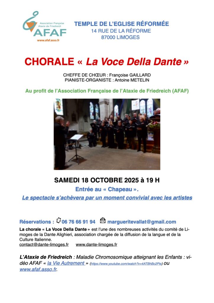 Concert de la Chorale "La Voce Della Dante" au profit de l'AFAF (Association Française Ataxie de Friedreich)